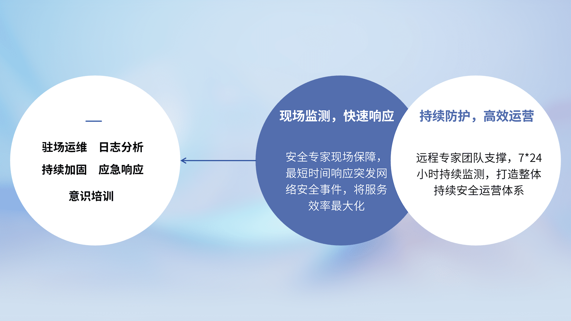 7X24小时持续监测安全事件,保持安全策略有效性,降低资产脆弱性风险,,,精准拦截黑客攻击,,减少被黑客利用的机会,,,第一时间遏制,,降低损失。。。