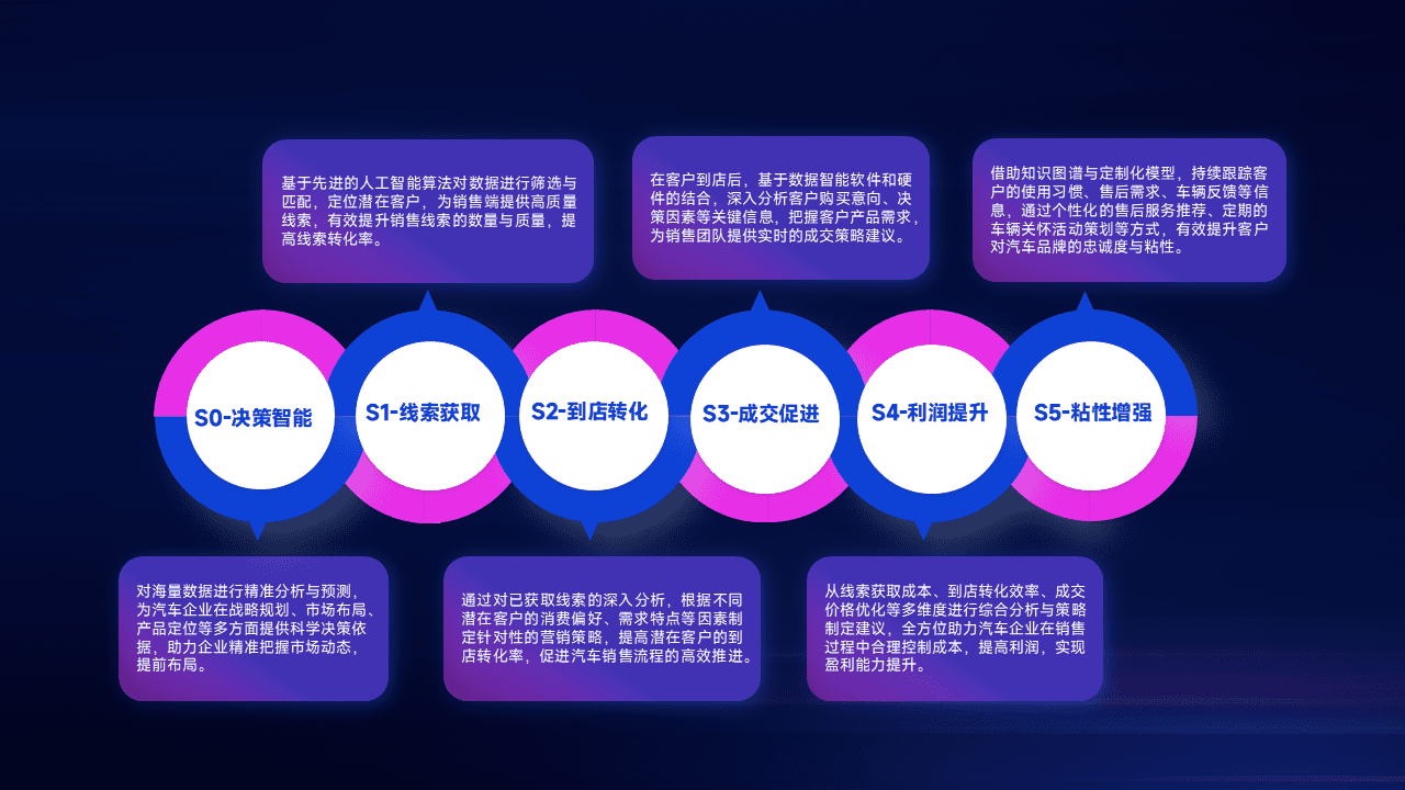通过拓宽潜在客户来源、、、优化线索分配并提高到店转化率,,以增强销售效率。。。同时,,,利用线索数据不断优化分析模型,,有效提升转化率,,,,扩大营销影响力。。。。